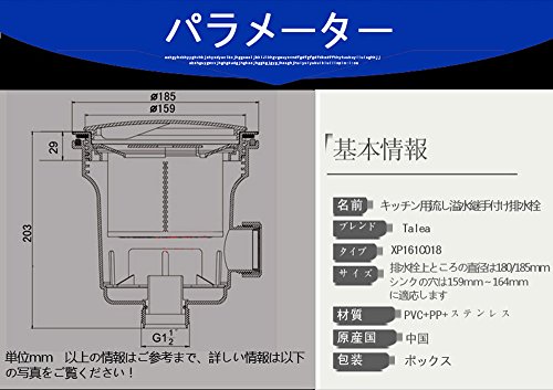 排水栓上ところの直径は180/185mm シンクの穴は159mm~164mmに適応します