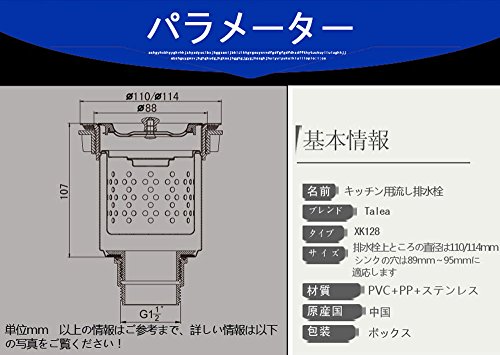 キッチン用流し排水栓 排水栓上ところの直径は110/114mm シンクの穴は89mm~95mmに適応します