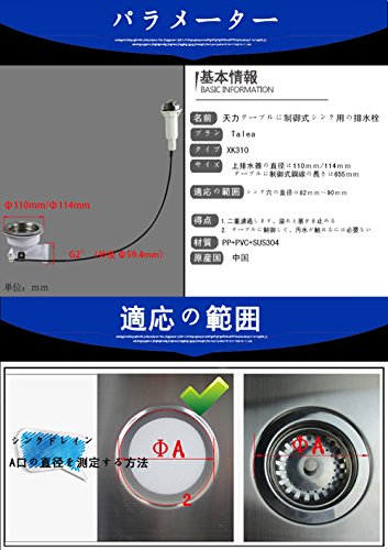 テーブルに制御式シンク用の排水栓 上排水器の直径は110mm/114mm テーブルに制御式鋼線の長さは655mm
