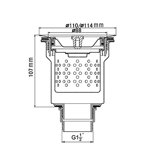 排水栓上ところの直径は110/114mm シンクの穴は89mm~95mmに適応します