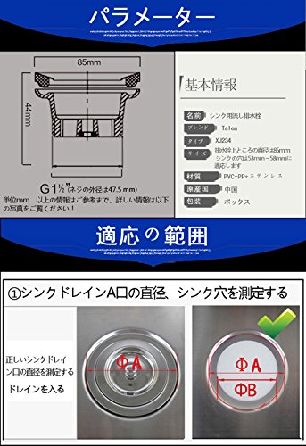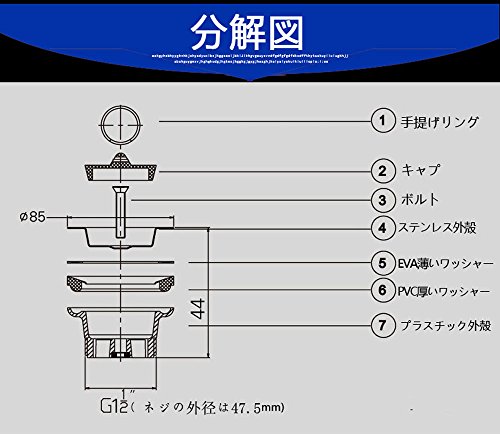 排水栓の直径は85mm シンクの穴は53mm~58mmに適応します