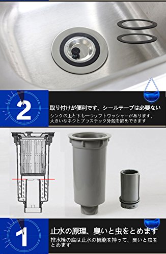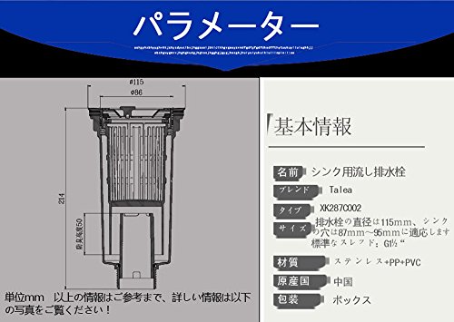 二槽シンク用のカゴ付流し排水栓 ホース接続部のネジサイズG1 1/2 取り付けネジ直径86mm