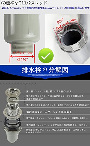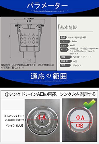 排水栓上ところの直径は110mm/114mm シンクの穴は89mm~95mmに適応します