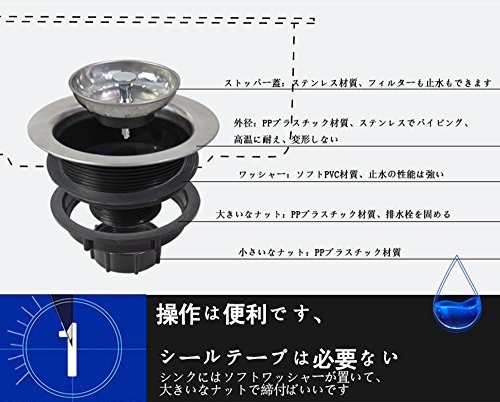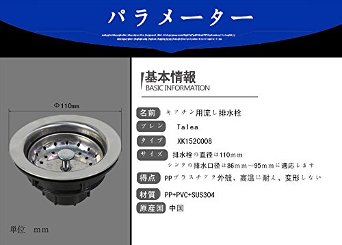 排水栓の直径は110mm、シンクの排水口径は86mm~95mmに適応します PPプラスチック外殻、高温に耐え、変形しない