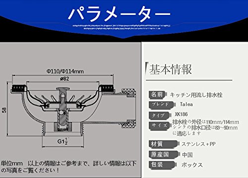 排水栓の外径は110mm/114mm二種類、シンクの排水口径は83~90mmに適応します