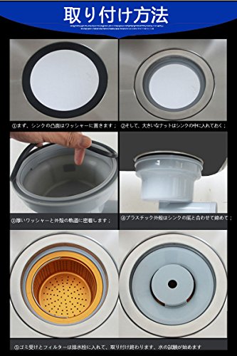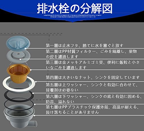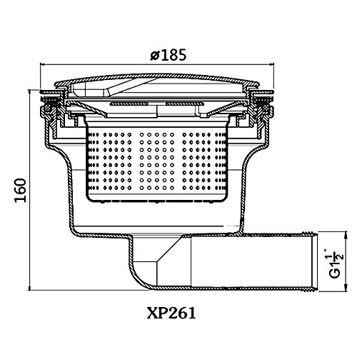 排水栓の外径は185mm、シンク排水口の穴159~164mmまで対応; ホース接続部のネジサイズG1 1/2。