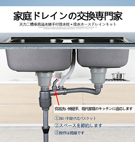 天力二槽垂直溢水継手付排水栓 排水ホースドレインシステム