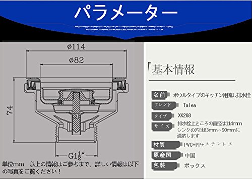 排水栓上ところの直径は114mm シンクの穴は83mm~90mmに適応します