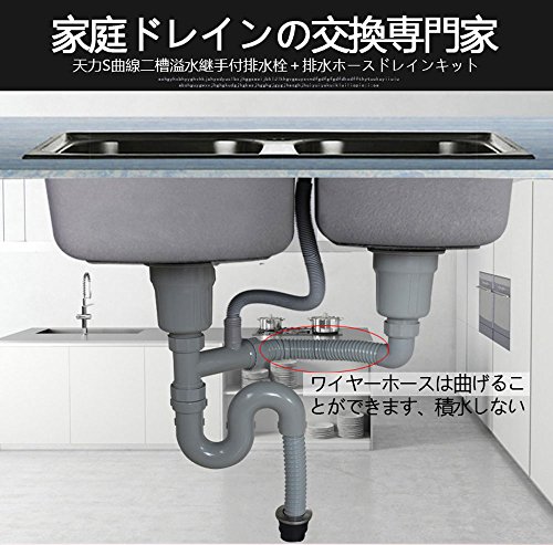 天力S曲線二槽溢水継手付排水栓 排水ホースドレインシステム