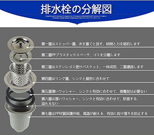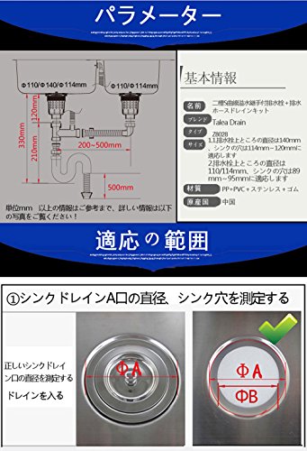 1.排水栓上ところの直径は140mm、シンクの穴は114mm~120mmに適応します 2. 排水栓上ところの直径は110/114mm、シンクの穴は89mm~95mmに適応します