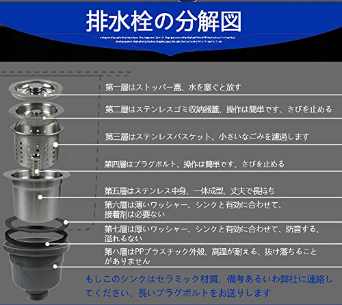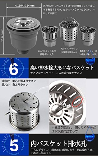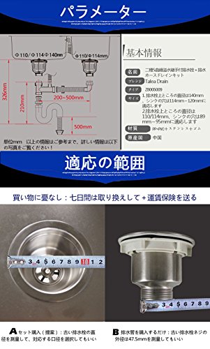 1.排水栓上ところの直径は140mm、シンクの穴は114mm~120mmに適応します 2. 排水栓上ところの直径は110/114mm、シンクの穴は89mm~95mmに適応します