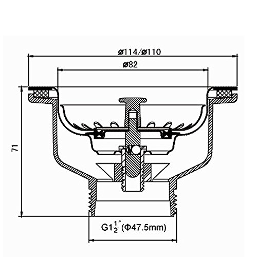 排水栓上ところの直径は110/114mm シンクの穴は83mm~90mmに適応します