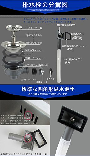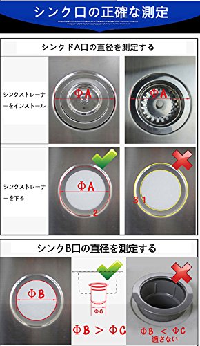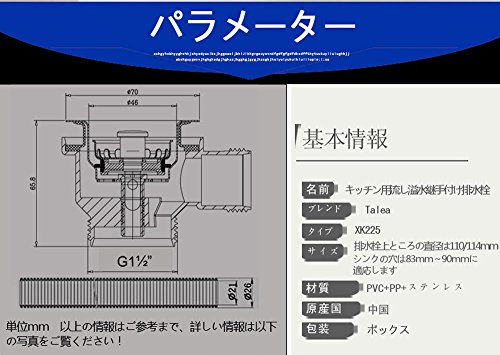 排水栓上ところの直径は110/114mm シンクの穴は83mm~90mmに適応します