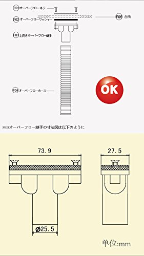 - オーバーフロー用ホースの内径は24.5mm、外径は29.5mm、長さは460mm