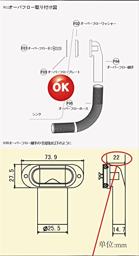 - オーバーフロー用ホースの内径は24.5mm、外径は29.5mm、長さは460mm