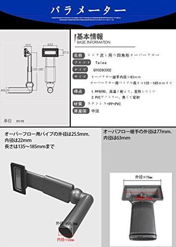 Taleaシンク流し用の四角形オーバーフローパイプ付き