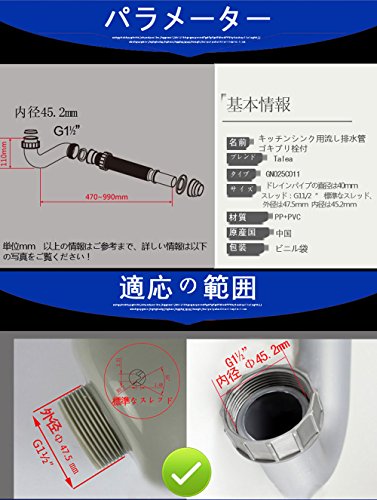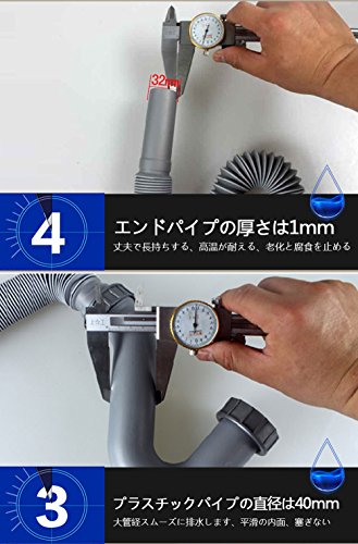 ドレインパイプの直径は40mm スレッド:G11/2“ 標準なスレッド、外径は47.5mm 内径は45.2mm
