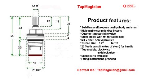 - NPT 1 / 2 "のバルブ20スプライン(ステムの歯を持つセラミック蛇口バルブは付属していません。含まれている真鍮m4ねじ
