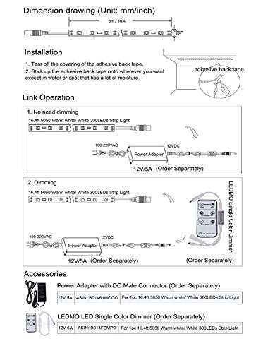 - へフィード、電源アダプタ(ASIN : b01461mogqが12 V / 5 a ( 60watt )する必要)は含まれていません。調光可能のLED単色ディマー( ASIN : b014ez4 m0 K )付き