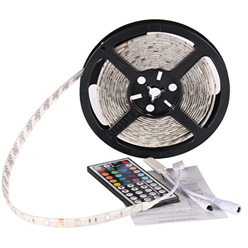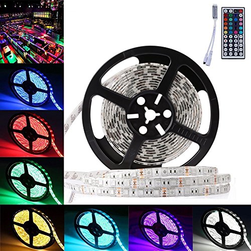 - パッケージコンテンツ: 1 x 16.4フィート/ 5メートル300個5050 RGB防水LEDストリップ、1 x 44キーIRリモコン(電源アダプターは含まれておりません、別途注文する必要)は含まれていません。