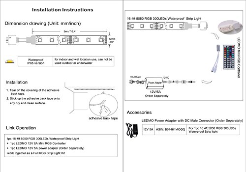 ledmoはその他のオプションを: 16.4 FT / 5 m 300個5050 RGB防水のフルストリップライトキット( RGBリモートコントローラと電源アダプタが必要)、ASIN b014kxamc8 "でご検索Amazonで