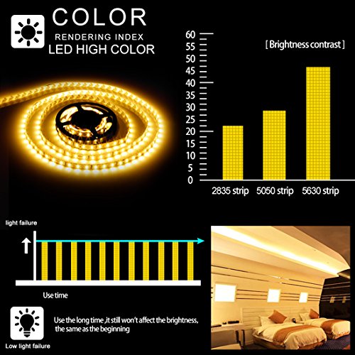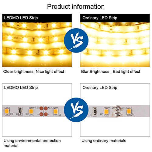 Ledmo LEDストリップライト、smd2835ledストリップnon-waterproof LEDストリップdc12 V 300 LED 16.4 Ft 15lm / LED明るさ3倍高cri80 LEDライトストリップ Warm White,IP20,300LEDs LED610N