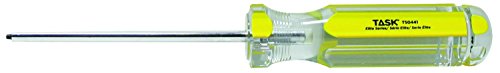 Get the job done quickly with this Task Tools Elite Series acetate hard grip Robertson screwdriver (#0, 4-inch length). Designed for professional users, Elite Series hard grip screwdrivers feature a larger handle that's designed for greater force and fatigue free driving. Made of cellulose-acetate, the handles are unbreakable, non-flammable and shockproof, as well as resistant to oil, grease, water and chemicals. Task Tools has been providing quality power tool accessories, hand tools, abrasives and worksite accessories to contractors, tradesmen and do-it-yourself enthusiasts across North America since 1968.