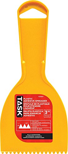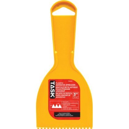 Applying adhesive made easy: thats the slogan for this adhesive spreader from Task Tools. The durable polycarbonate tool features 1/8-Inch notches.