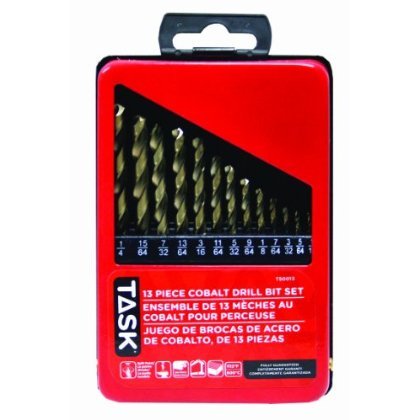 Drilling in steel is rarely a successful event with the wrong bit. Either it heats up and breaks or goes for a stroll across the work before it finally finds purchase. The Cobalt bit from Task Tools starts on contact thanks to a 135-Degree, split point tip. Precision ground steel helps the bit operate like its designed to: flawlessly. Withstanding extreme drilling temperatures even at high speeds, the bit lasts through those extended jobs and then some. This 13-piece set includes bit from 1/16 to 1/4-Inch in diameter.