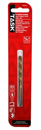 The ultimate in durability and sharpness, the titanium-coated bit from Task Tools offers fast drilling in steel, wood, plastic and more time and time again. High Speed Steel construction makes this bit stand up to wear and tear in any material. A 135-Degree, split point design lets the bit find purchase and begin cutting on contact with no walking or scratching the work piece. The bit is also precision-ground for smooth drilling operations. Bit size: 13/64-Inch in diameter.