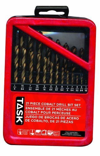 Drilling in steel is rarely a successful event with the wrong bit. Either it heats up and breaks or goes for a stroll across the work before it finally finds purchase. The Cobalt bit set from Task Tools starts on contact thanks to a 135-Degree, split point tip. Precision ground steel helps the bit operate like its designed to: flawlessly. Withstanding extreme drilling temperatures even at high speeds, the bit lasts through those extended jobs and then some. This 21-piece set includes bit from 1/16 to 3/8-Inch in diameter.