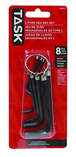 A handy tool that easily slips into your pocket, this Task Tools key chain metric hex key set (model T16047) features strong chrome vanadium (Cr-V) steel keys with black finish and chamfered edges. This tool offers eight sizes: 1.5mm, 2mm, 2.5mm, 3mm, 4mm, 5mm, 6mm and 8mm. Task Tools has been providing quality power tool accessories, hand tools, abrasives and worksite accessories to contractors, tradesmen and do-it-yourself enthusiasts across North America since 1968.