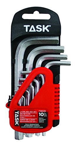 A handy tool that easily slips into your pocket, this Task Tools short L-type metric hex key set (model T16039) features strong chrome vanadium (Cr-V) steel keys with satin chrome finish and chamfered edges. This tool set offers ten sizes: 1.27mm, 1.5mm, 2mm, 2.5mm, 3mm, 4mm, 5mm, 6mm, 8mm, 10mm. Task Tools has been providing quality power tool accessories, hand tools, abrasives and worksite accessories to contractors, tradesmen and do-it-yourself enthusiasts across North America since 1968.