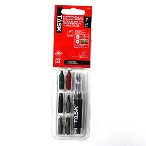 Task Tools Robertson and Phillips screwdriver power insert bits are made with 2-piece, industrial grade, hardened tool steel tips. Includes Robertson 1-Inch - #1 Green, #2 Red, #3 Black; Phillips 1-Inch - #1,2,3, and Compact Drive Guide. Manufactured in Canada.