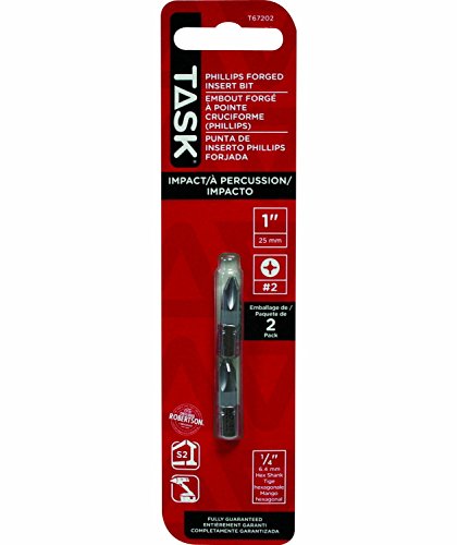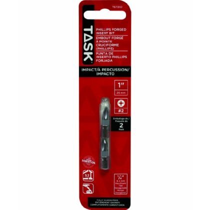 Drive screws quickly and easily with this driver bit from Task Tools. The bit features modified S2 steel construction for smooth driving through hard woods and pressure treated material. Great for deck projects and fencing, down-turned shaft geometry offers unsurpassed impact resistance. A specially heat-treated construction process means optimal durability and less swapping of bits during extended jobs. Size: Phillips #2, 1-Inch length