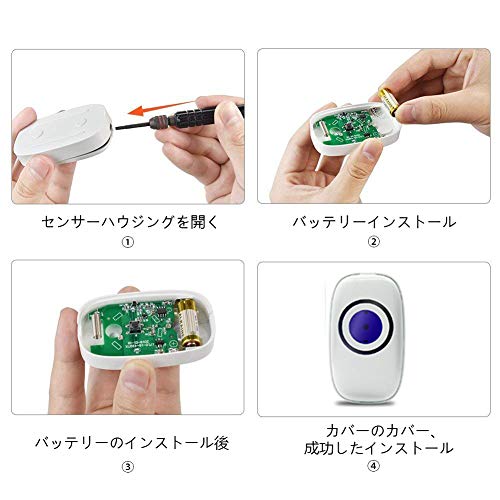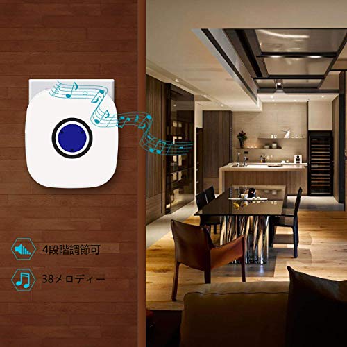 - ☑【音楽と音量調節可能】28-105dBの音量,38種類の音楽が選択可能で、4段階の音量調整が可能で、多種多様の環境と要求を満たします。発信機のボタンを押せば、青いLEDインジケーターが点灯する同時に、受信機にも青いLEDライトが点灯します。耳の不自由の方にとっても、大変便利です。