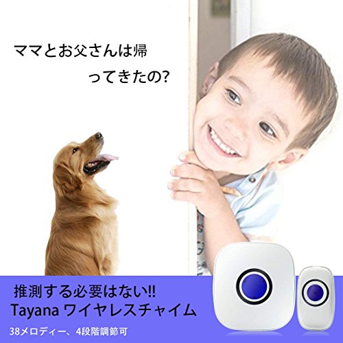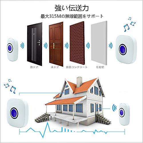 ワイヤレスチャイム インターホン 呼び出しチャイムセット 玄関ドアベル 28-105dBの音量 4段階調節可 38メロディー 315M無線範囲 IP65防水防塵