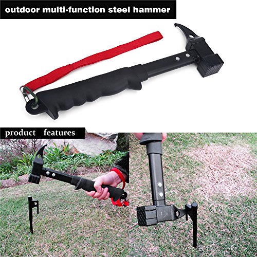 キャンプハンマー高強度ヘッドラバーハンドルペグステークスマレットハンマーとストラップネイルプーラーキャンプ設定ツール<br/>