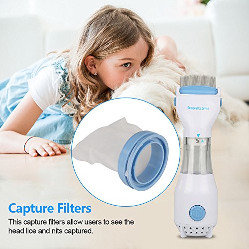 - 使いやすい:すべてのシラミと卵は、使い捨ての捕獲フィルターで捕獲され、安全で使い捨ての使い捨てが可能です。