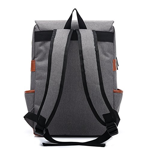 ラップトップバッグ、TechCodeカジュアルヴィンテージバックパックキャンバスラップトップコンピュータバッグカレッジスクールバックパックショルダーバッグOurdoor週末旅行用デイパック グレー XL-SJB-GY