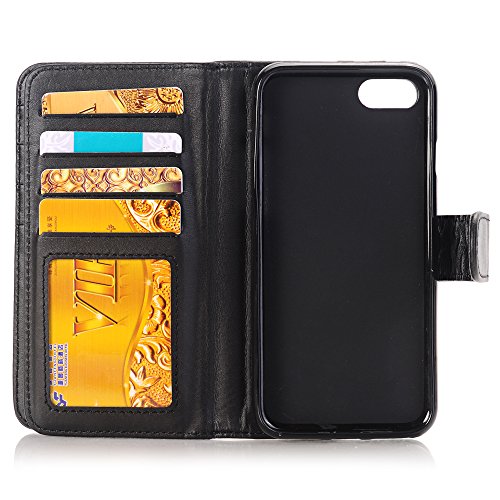iPhone 7 Plus財布ケース、TechCodeスリム画面保護PUレザースタンドフリップ財布型ケースカバーカードスロットカードホルダー iPhone 6 PP-FMW-IP6-BK