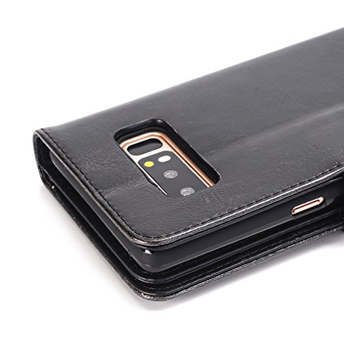 iPhone 7 Plus財布ケース、TechCodeスリム画面保護PUレザースタンドフリップ財布型ケースカバーカードスロットカードホルダー Galaxy Note 8 DE-PP-FMW-Note8-BK