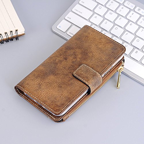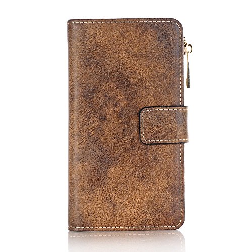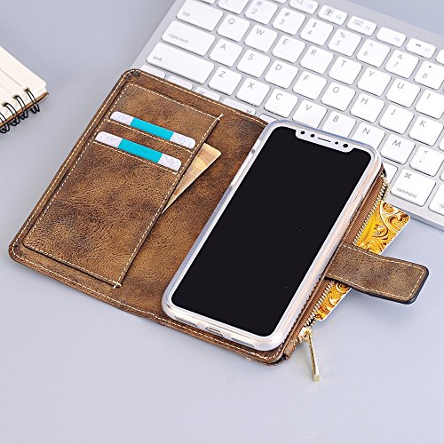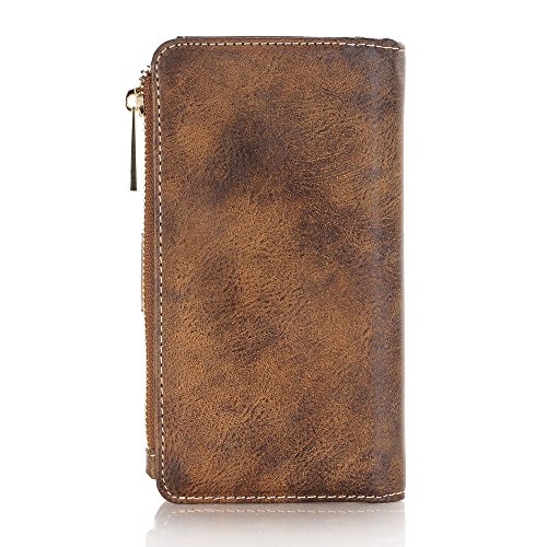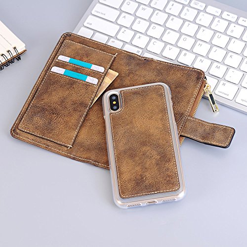 Iphone 7 Plus クリアケース マグネット式吸着、SIMPLE DO ジッパーバッグ 多機能 財布型 カードポケット付き 盗難防止 (ダークブラウン)