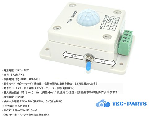 人感 スイッチ 赤外線 センサー リレー DC 12 - 60 V 自動・手動2モード機能搭載 TEC-PI1260