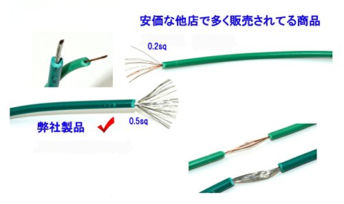 配線は、AWM絶縁電線0.5sqを使用。接続部はハンダ処理にてしっかりと接続した弱電回路測定用ケーブルです。(他店で安価で販売されている多くの物は、0.2sq ? 相当品で電線接続部をクリップ基部で挟んだだけの断線・接触不良がおきやすい商品を多く見かけます。)弱電回路の配線確認や機器の動作チェックにお使いいただけます。