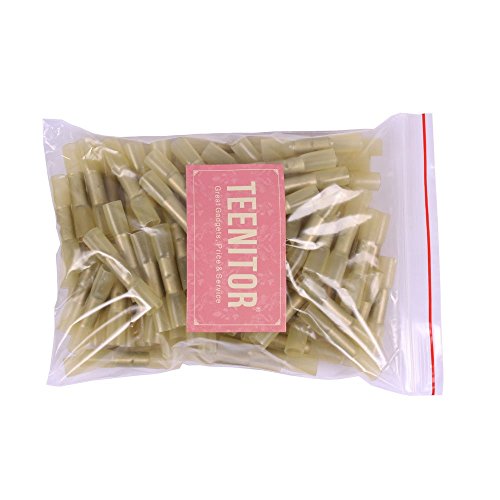 Teenitor Brand products. The Teenitor heat shrink butt connector 10-12 AWG crimp and seal, 30-pack. The barrel is created from one seamless piece of metal that eliminates the problem of the barrel opening. Provides outstanding wire contact, increased current flow, and superior tensile strength while ensuring less voltage drop, preventing wiring failures and reducing equipment downtime. May be used with solid or stranded wire. Features: translucent, adhesive-lined polyolefin tubing that allows visual inspection, prevents wire corrosion and provides a waterproof seal; Conforms to automotive manufacturer's specifications for wiring repairs (necessary for maintaining electrical warranties); seamless butt connectors prevent opening of connector barrel; Color-coded tubing with wire gauge imprint provides easy identification of the correct part for the job.