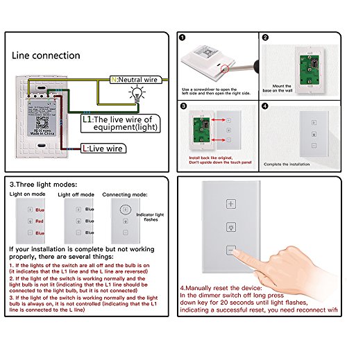 - [簡単取付] Smartウォールライトスイッチのインストールは従来のメカニカルスイッチと同じで、単純で、便利になっています。必要としている場合でも、中性線)を参照してください。
