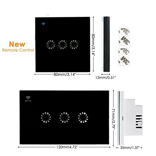 teepao RF WiFiスマートライトスイッチ – 1 /2 /3ギャング壁ライトAppスイッチ、タイマースイッチタッチコントロールパネル、WiFiリモートコントロールviaスマート電話、作業with Alexa Google 8025779207377