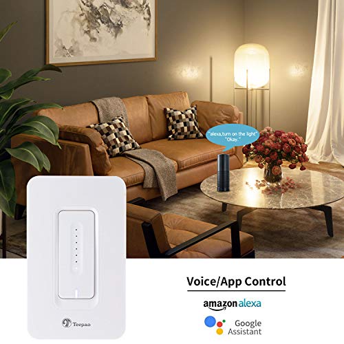スマートディマースイッチ – タッチアップグレードteepao Dimmer Works with Alexa、GoogleホームタイミングスイッチコンセントWiFiスマート照明制御(交換単極のみ)寝室、リビングルームに必要なハブない