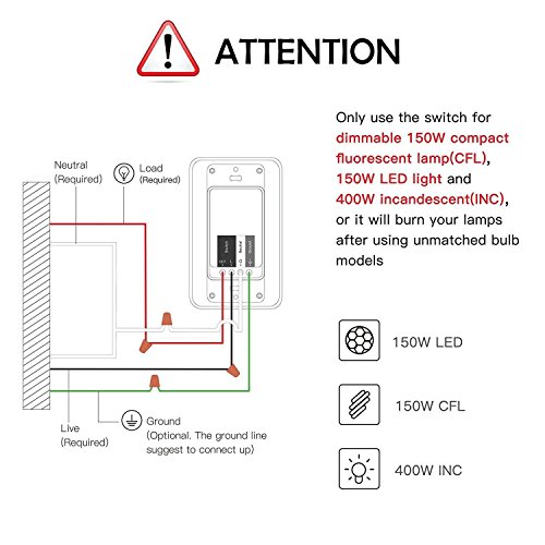 電気的要件: – 中性線の必要はありません。 – 2.4 G HzネットワークのWiFiサポートが必要。 – との互換性はありません3ウェイ(見極めを制御)スイッチで構成されています。 – お客様の既存のスイッチ・プレートにのみ適し – と互換性のスイッチのウォールプレートのみteepao wallplate。